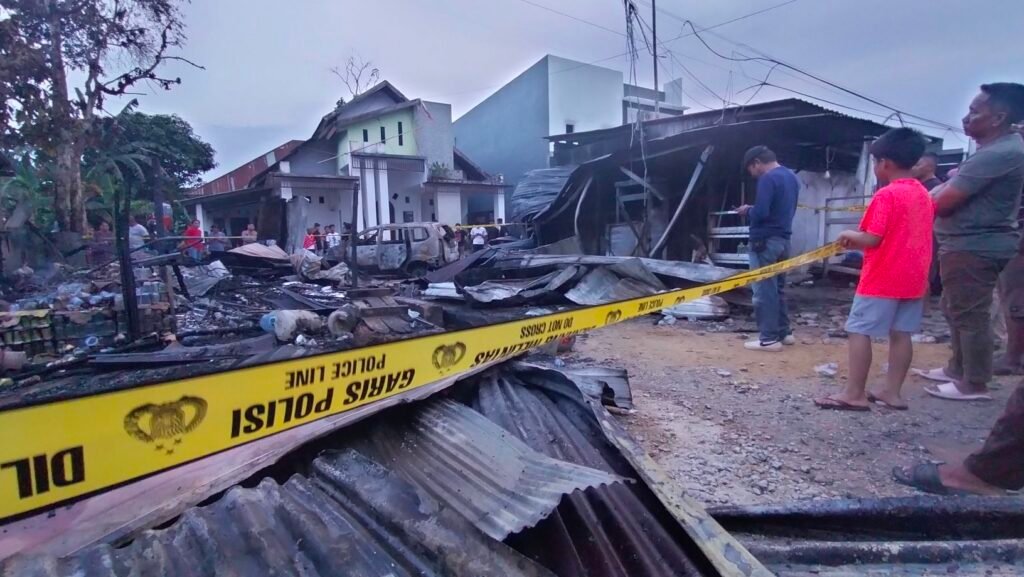 Kobaran api yang disertai ledakan-ledakan dahsyat menghanguskan kios sembako yang di depannya terdapat Pertamini, satu unit Pertamini lain di samping kios tersebut, serta satu unit mobil Toyota Avanza.