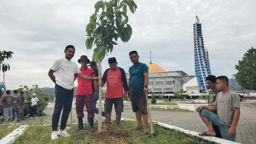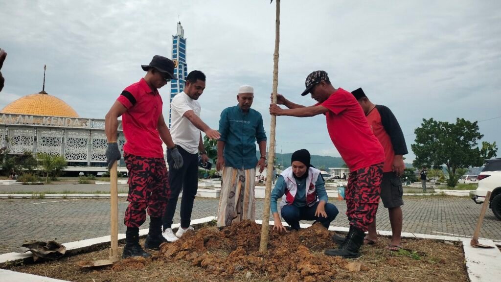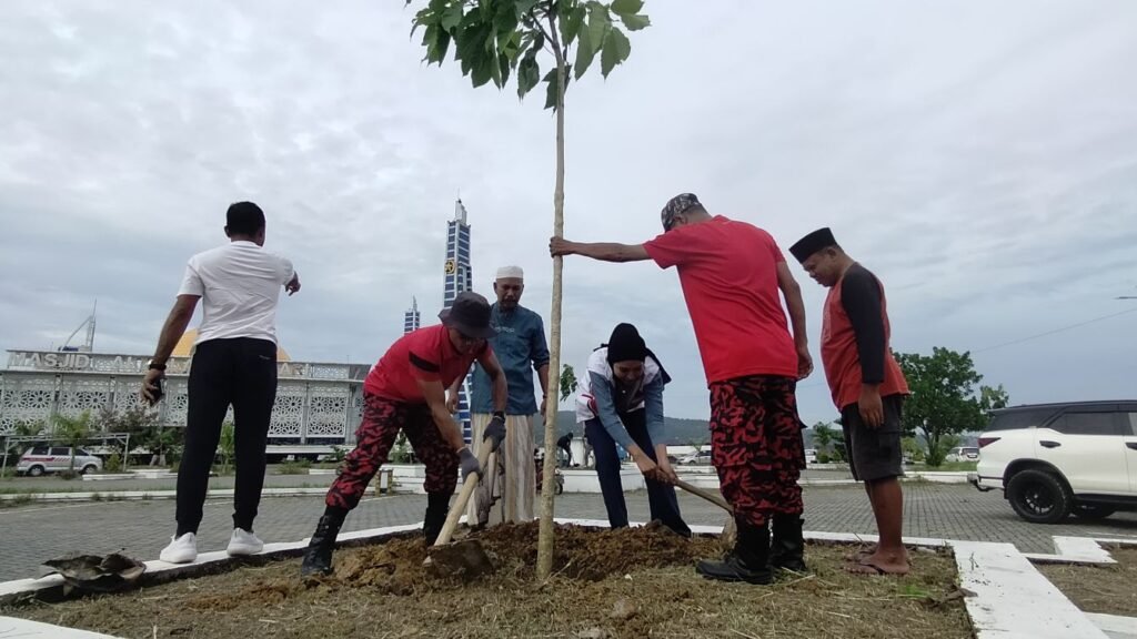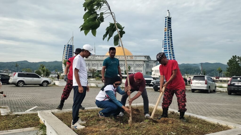CELEBESPOS.ID, KENDARI — Dewan Pimpinan Cabang (DPC) PDI Perjuangan Kota Kendari melakukan aksi sosial Ramadan dengan menanam pohon tabebuya di kawasan Masjid Al Alam, Ahad, 22 Februari 2026. Kegiatan ini menjadi bagian dari target penanaman 1.000 pohon tabebuya di berbagai titik Kota Kendari secara bertahap.