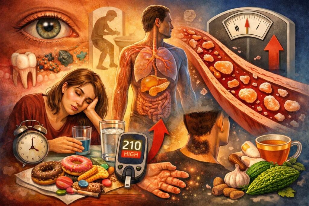 Masalah kesehatan mulut seperti sariawan berulang atau gangguan gigi juga lebih mudah muncul karena bakteri berkembang lebih cepat dalam kondisi gula darah tinggi. Di sisi lain, luka pada kulit cenderung lebih lama sembuh akibat terganggunya aliran darah dan proses regenerasi sel.